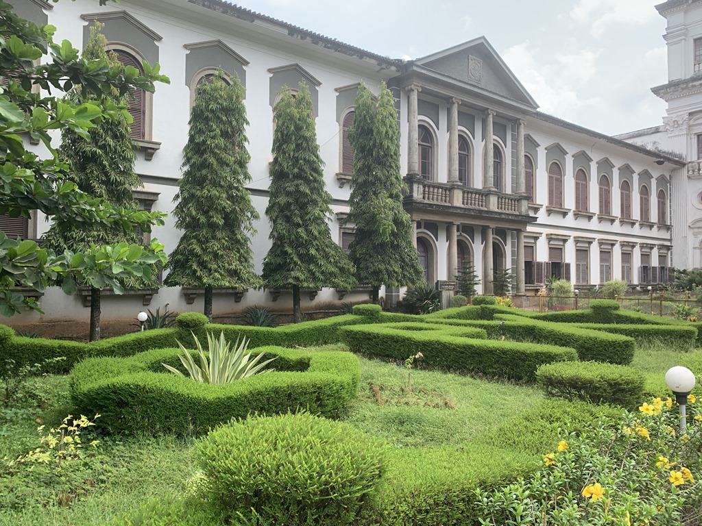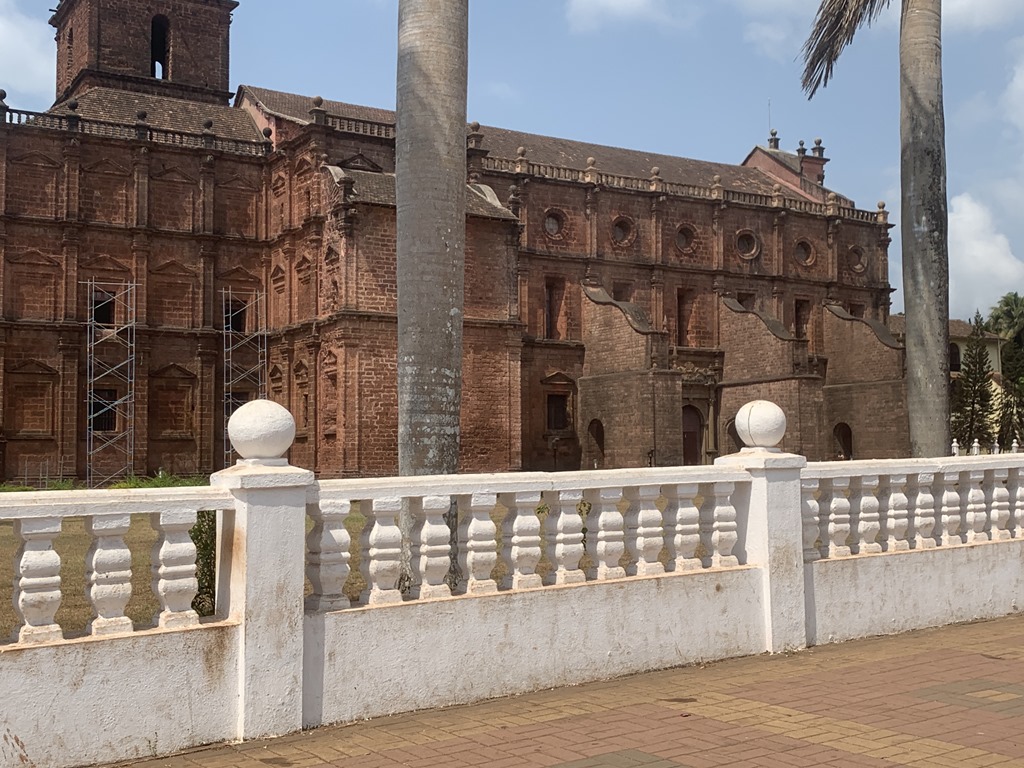 The tomb of St. Francis Xavier, the Jesuit who spread Christianity in the Portuguese colonies and is the patron saint of Goa, is found here. The building is the first church in India to be elevated to the status of a minor basilica and is also a UNESCO World Heritage site. It was consecrated in 1605 and is the best example of baroque architecture in India. What we didn’t know before is that the church was originally covered in lime plaster which was all removed prior to the visit by the Pope in 1950. You can see that the adjoining building still has the lime plaster covering.