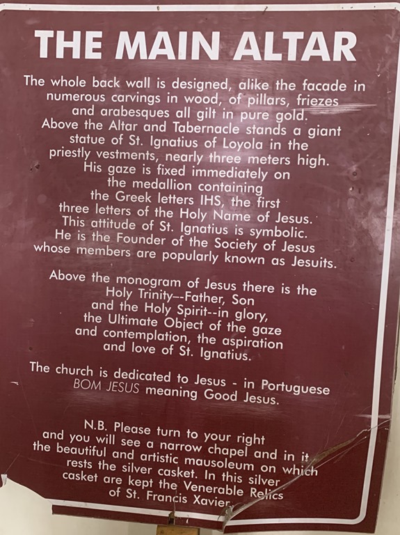 Just across the road is the Basilica of Bom Jesus, the most famous church in Old Goa. Bom means holy or good. We had visited both of these churches on our last visit here in 2017 but Tom and Alice had not been to India before. With new guides, you always appreciate something new though.