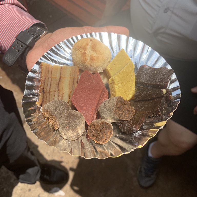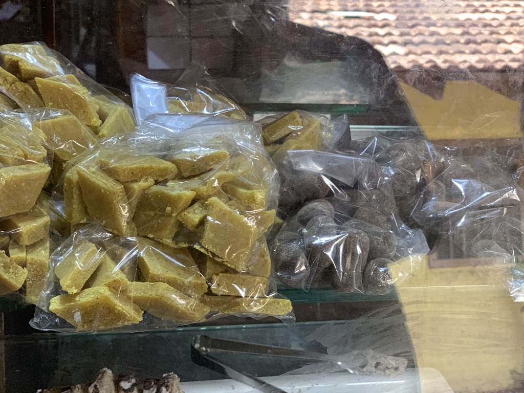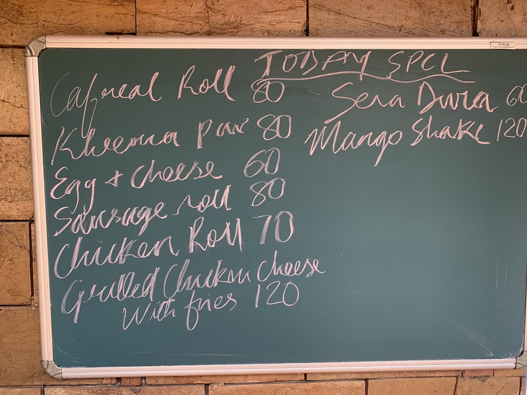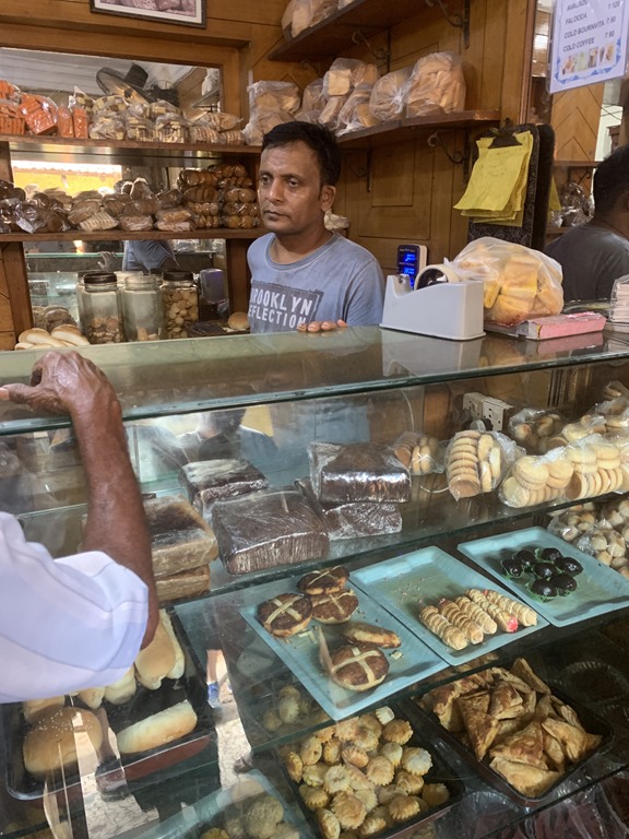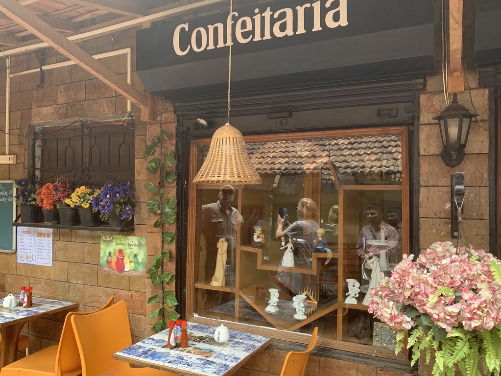We started out on a walk through Old Goa and Valentino took us to a small bakery which was very lovely. He bought us a sample plates of the specialties found in Goa. The bakery also had main dishes and you can see how reasonable the prices are. For an example, 80 rupees is $1.15 US.