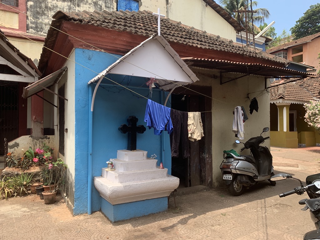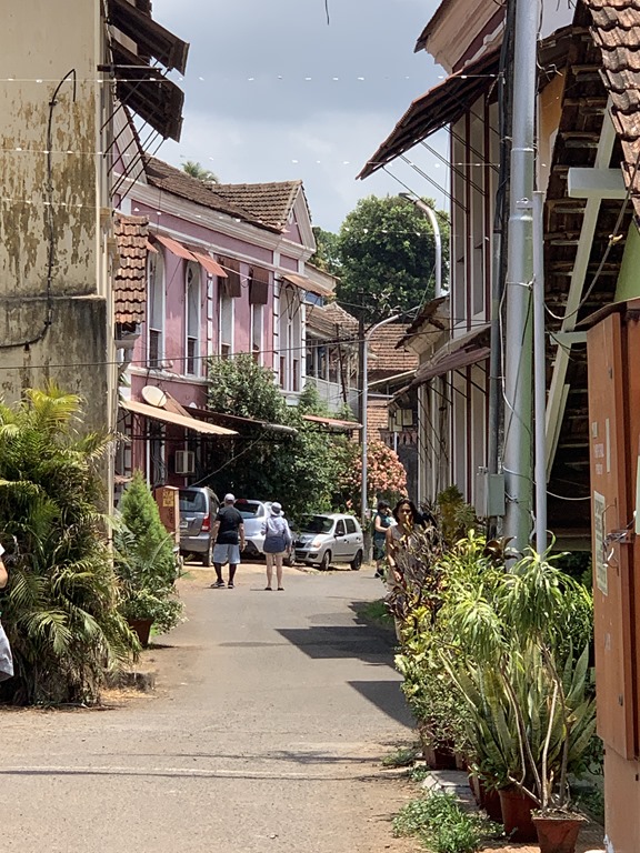We continued our walk through this area of Old Goa which was really charming. The homes are painted in bright colors and many are in Portuguese style with verandas. The paint is not required anymore but the old rule was that the homes had to be repainted every year. Many still do it even though they don’t have to.