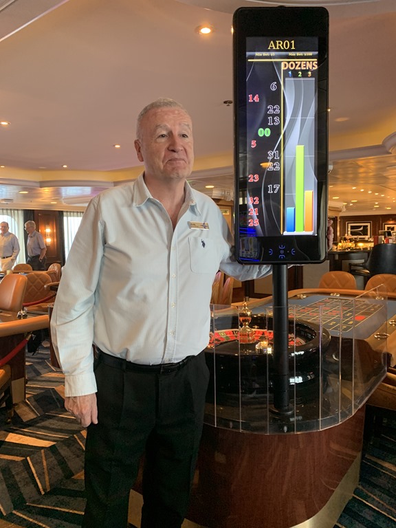 One of the projects on the ship has been the creation of this mural. It has small pictures of passengers, sights in the ports, pieces of tickets and much more to create the big “O” logo for Oceania. I haven’t spotted our pictures yet, but some people have. They will have to point it out. No news yet on what will happen to the mural at the end of the cruise, but for now, it will be displayed in different parts of the ship on port days.