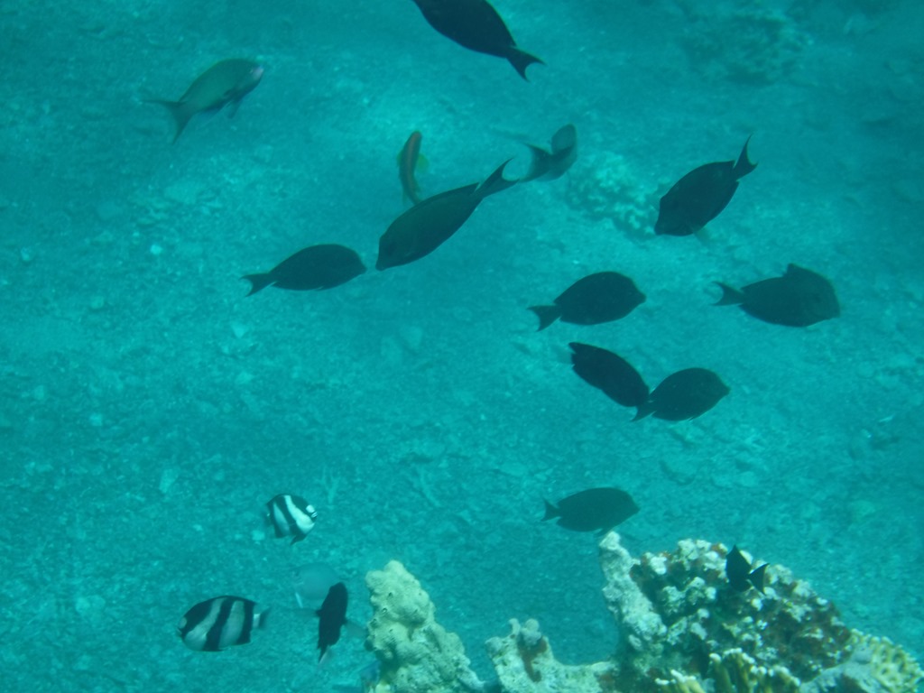 The first snorkel spot had a very strong current, lots of wind and only two people went into the water – Norm was one of them. Both thought it was much too difficult for snorkeling. They got pushed so far so fast that they both came back right away. The crew threw out a life preserver on a rope to assist them in getting back to the boat. So we moved on to another spot.