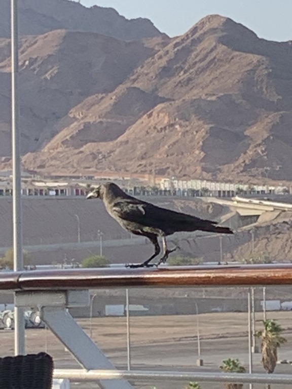 We were amused by the crows at the Terrace Café when we were eating breakfast. They came right up on the railings and when no one was around they flew in to the trays of used plates and flew off with whatever leftover they could find!