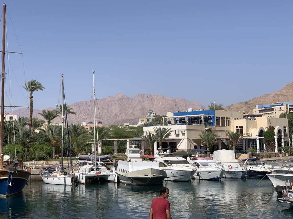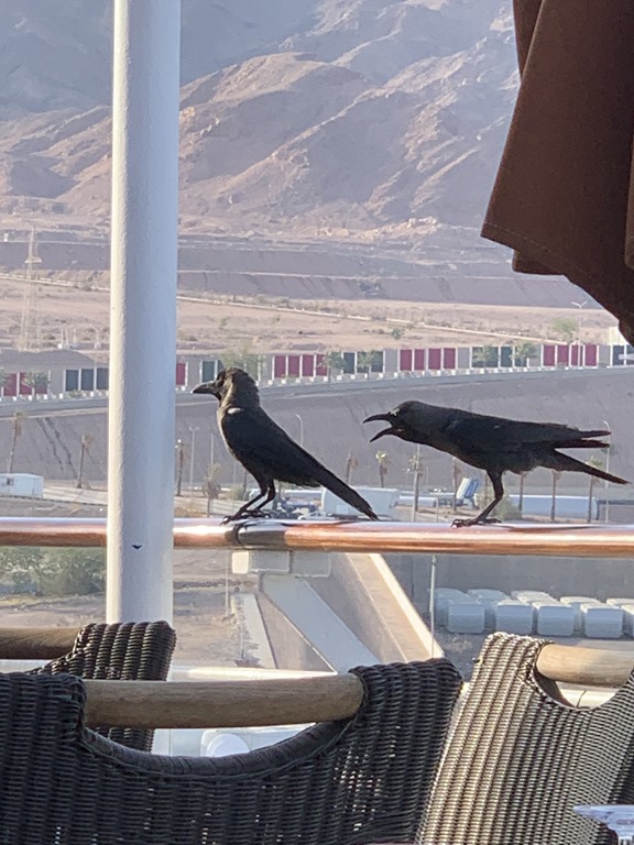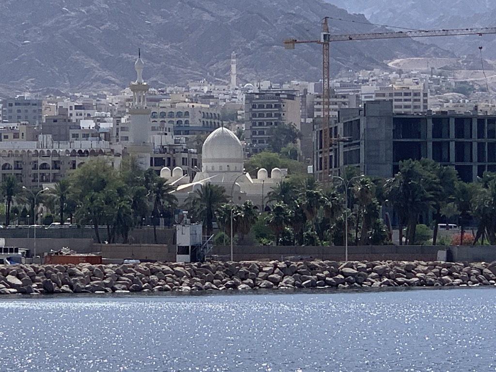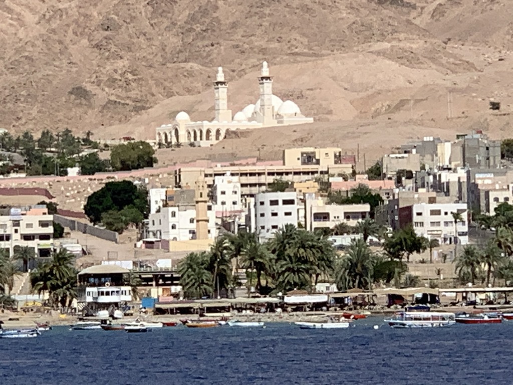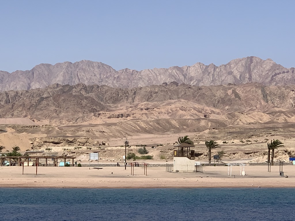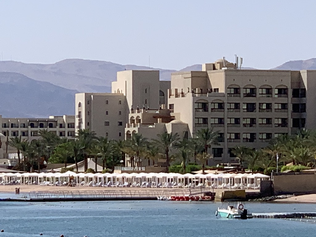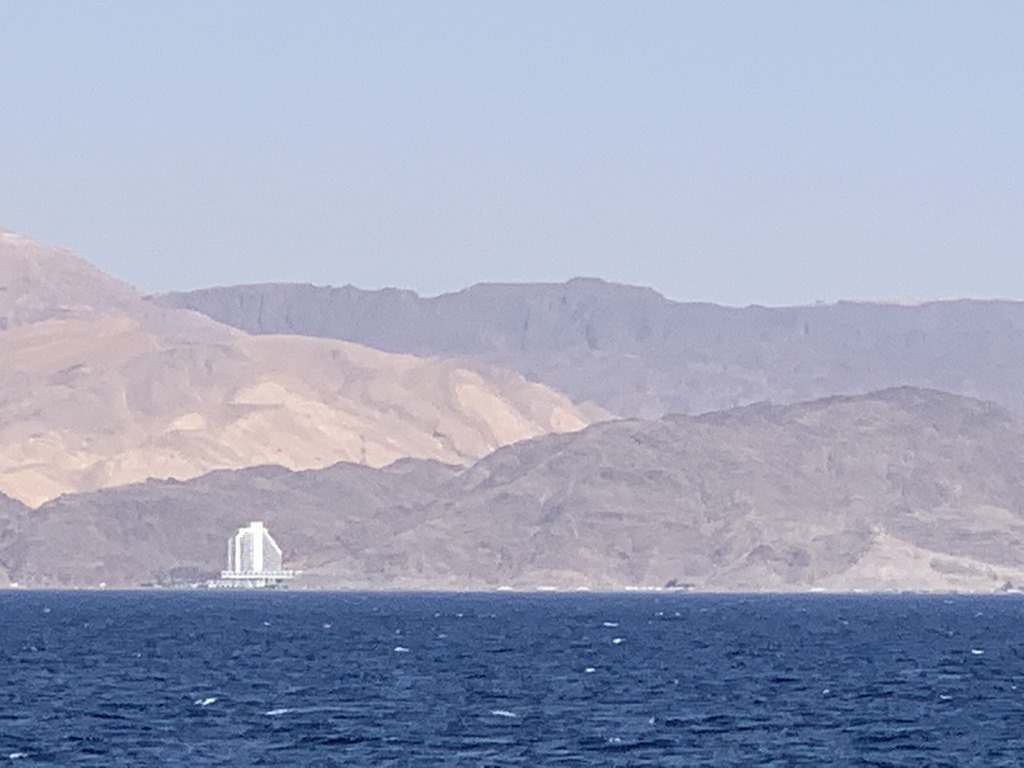Our day started with the view from our balcony. Although we are in Aqaba, Jordan, the view across the water was Eilat, Israel.