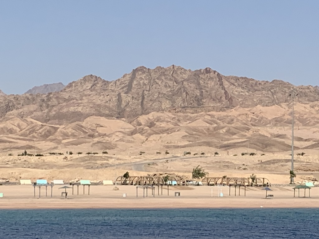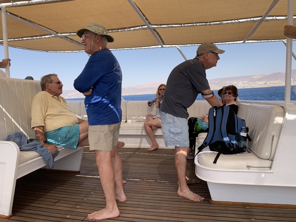 We went on a yacht for snorkeling in the Red Sea, it was a tour set up by Lori and Mark – we met them on the 2015 World Cruise. There were just 12 of us and it was a terrific day. As we traveled out to the first snorkeling spot, we were in full view of three different countries: Jordan, Israel and Egypt.
