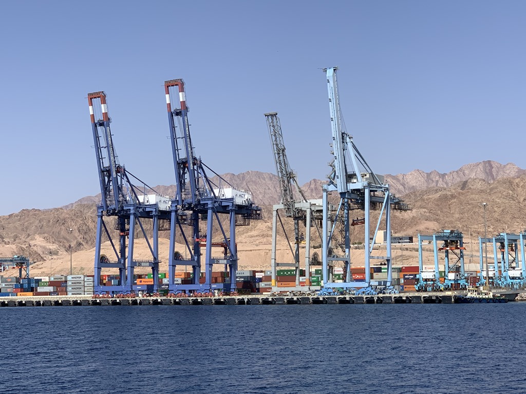 Here are some pictures from the return trip in the late afternoon, all on the Jordanian side. The mountains were such beautiful colors and the container ships are HUGE.