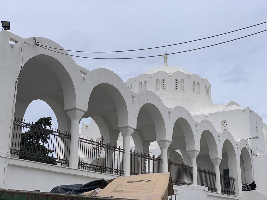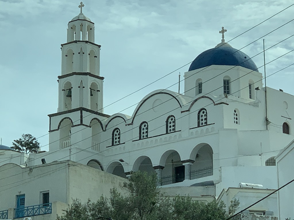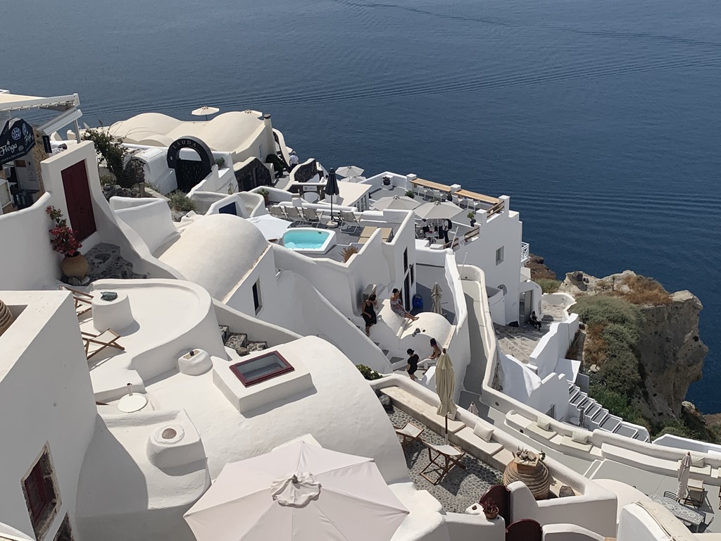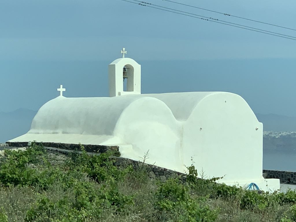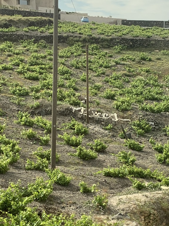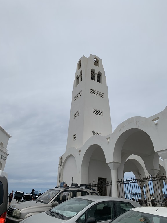 We went on to the village of Oia which is built on a dramatically steep slope of a caldera that formed after the volcanic eruption. Many of the dwellings are nestled in niches hewn out of the volcanic rock. There are caves here used for wine, too.