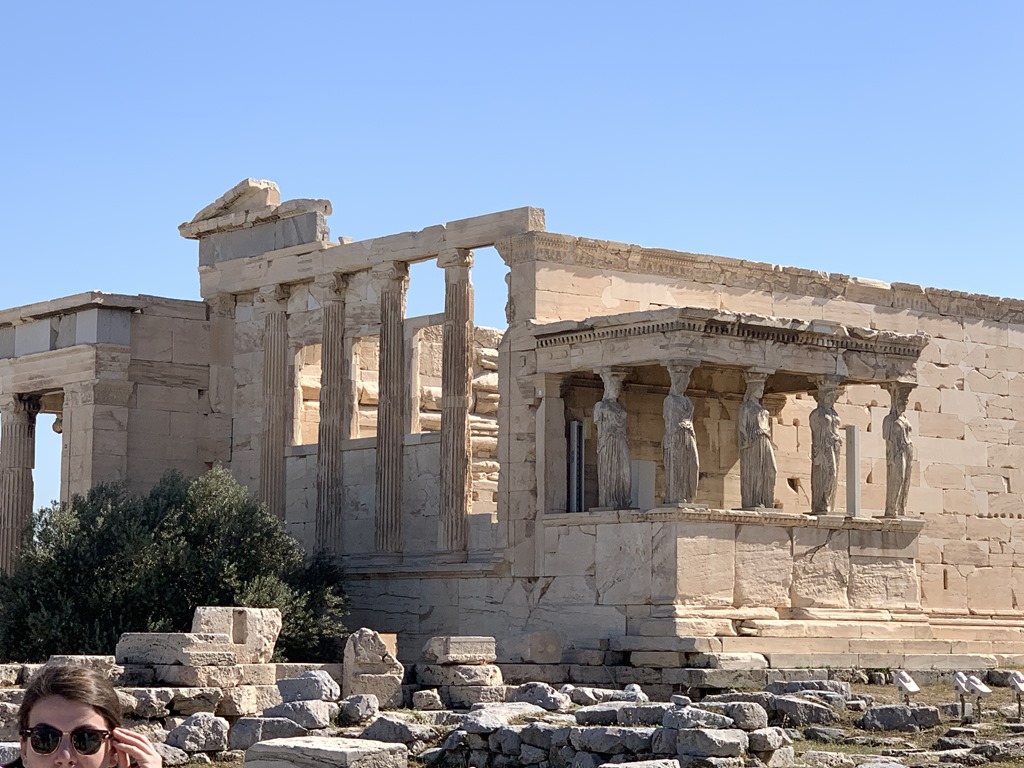 The Erechtheion is a temple built as a shrine to Athena (and in case you didn’t know, Athens was named after this goddess), and the twin deity Poseidon – Erechtheseus. The most distinctive feature is the ingenious design of the six support columns carved in the shape of maidens. Some of the original statues are on display in the Acropolis Museum.