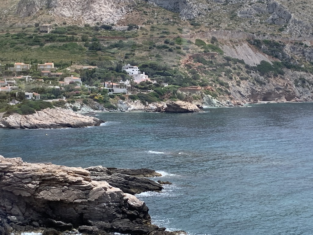 Our trip to Cape Sounion was so pretty as we rode along the coast. There is some fish farming going on here. And the trees are pistachio trees!