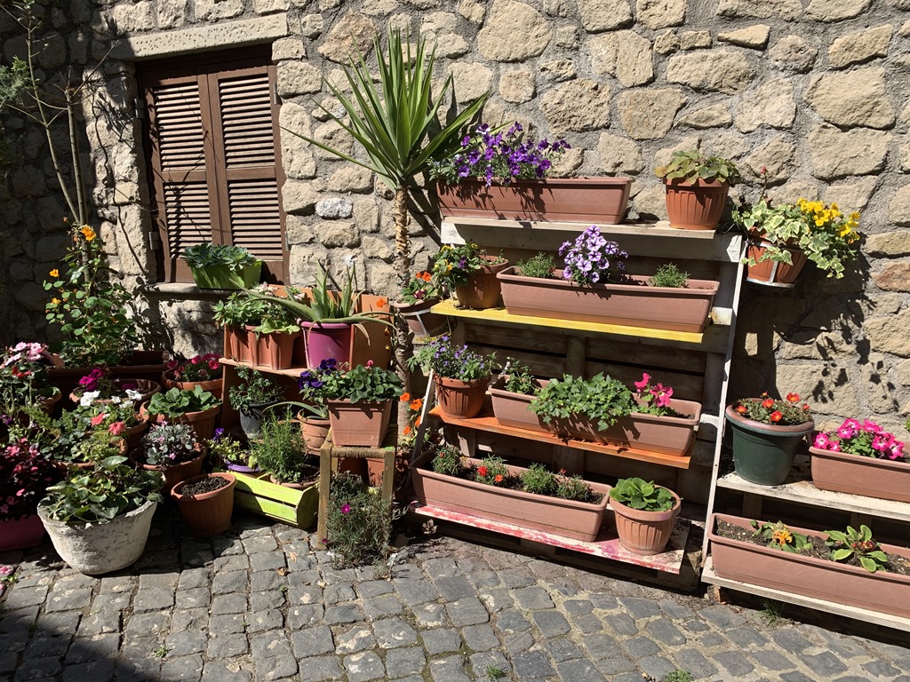 We drove around the lake to the small village of Anguillara.  We wandered through the village to the top of the hill where the church stands.  It was closed but we did see the charming homes, beautiful flowers and of course, the lake.