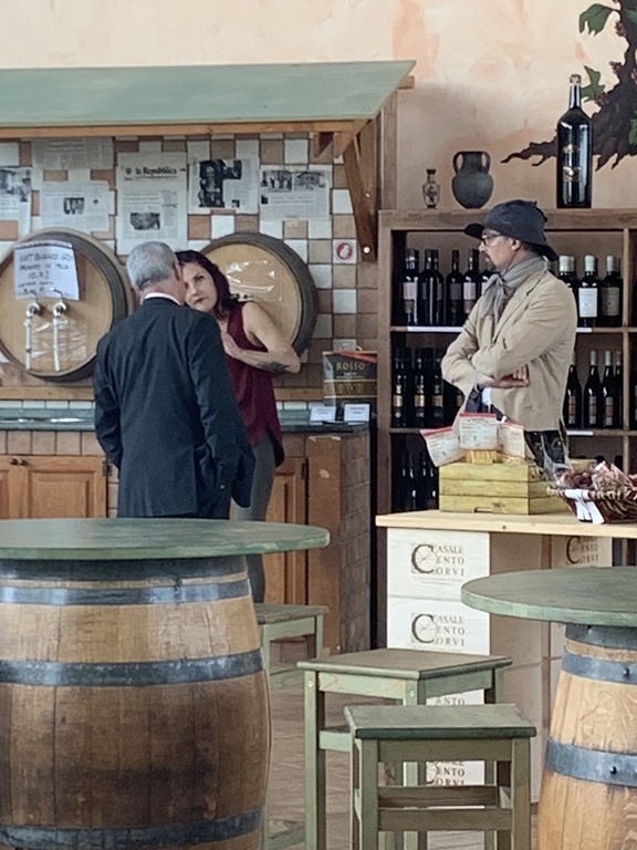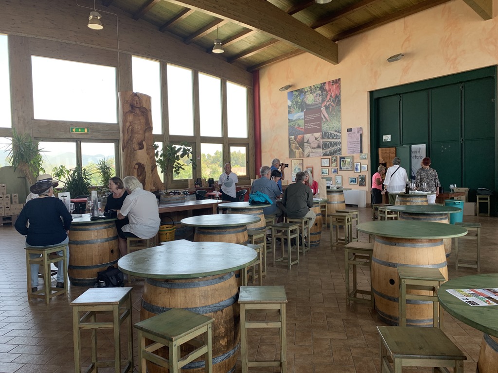 The winery we visited is called Cento Corvi which means 100 crows. We only had 19 people on this trip and we were the only ones at the winery.  They served cheese, artichokes, olives, bread, two kinds of ham and olive oil and we tasted 7 different wines.  We chose one white and one red to buy and take back to enjoy on the ship. They were all pretty good.