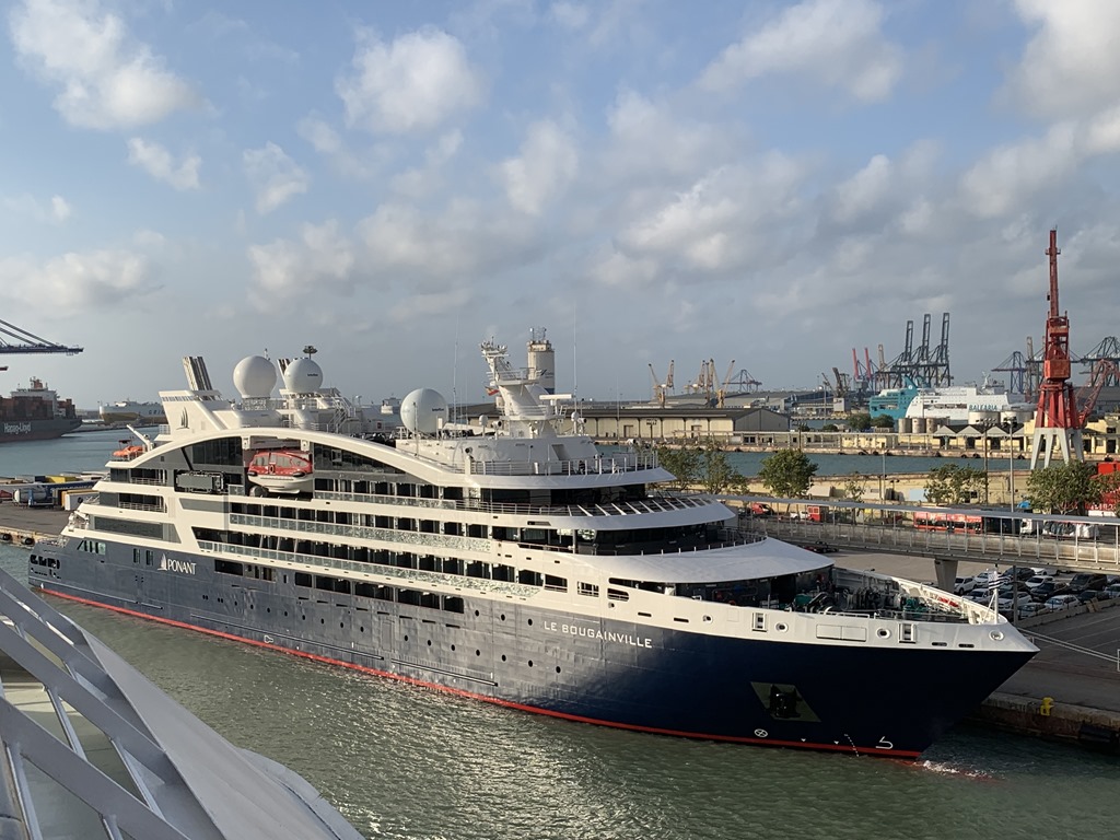 There were two other ships in port today. The Royal Caribbean Independence of the Seas and this small French Ponant ship, le Bougainville.