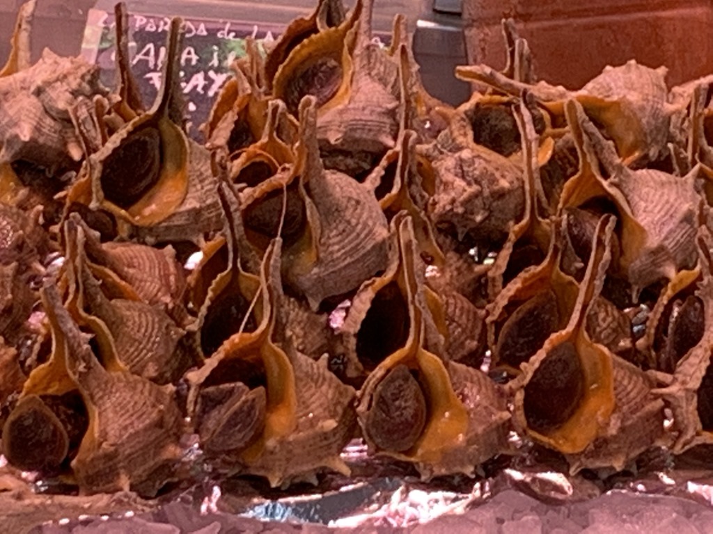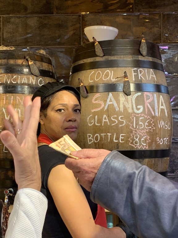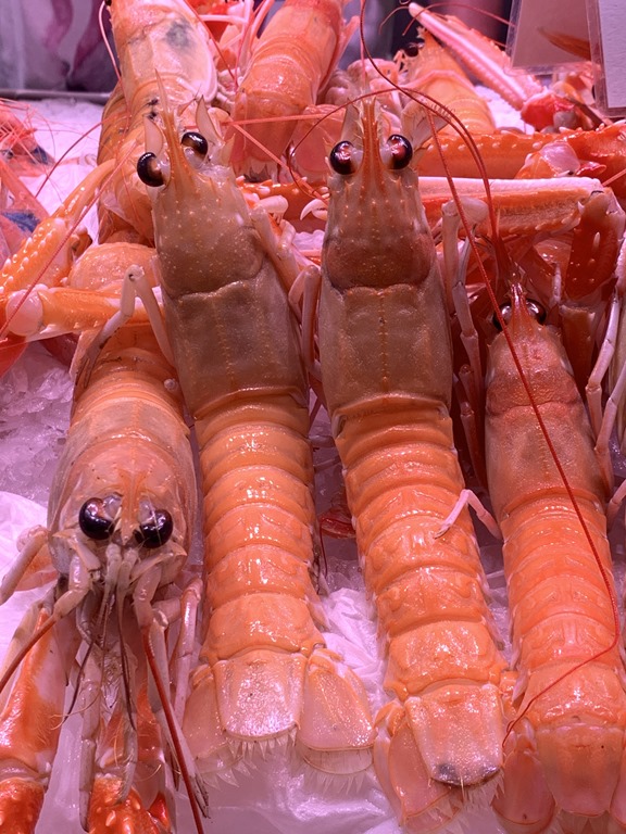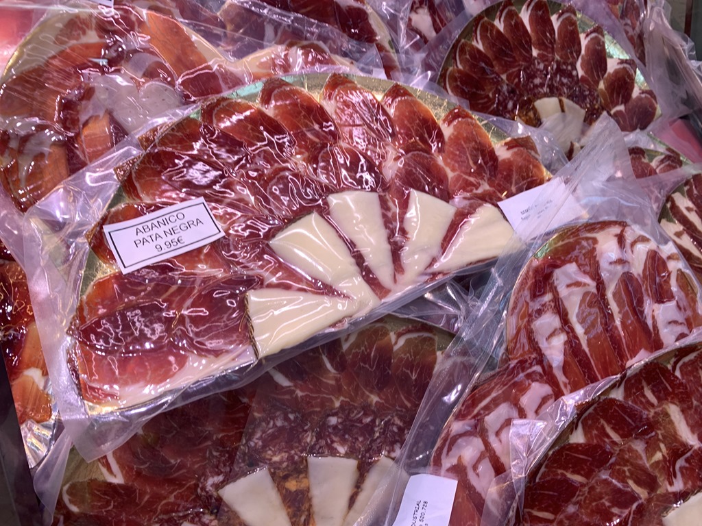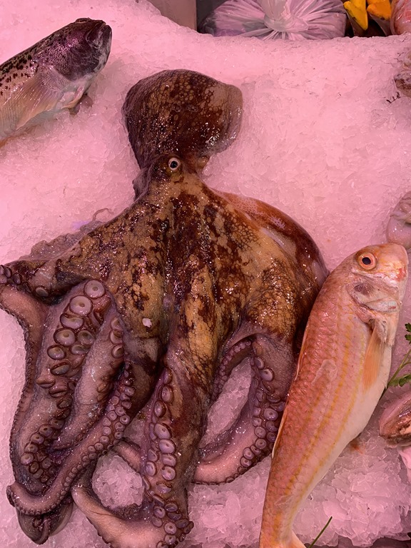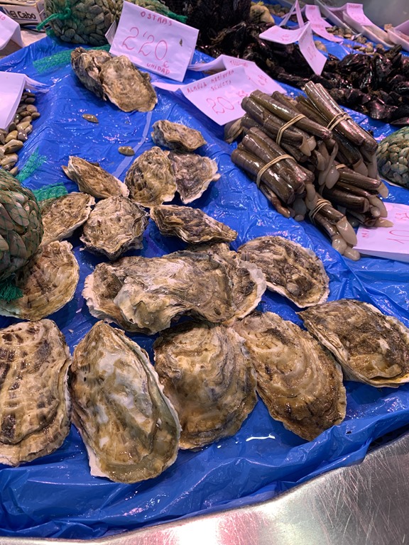 Here’s a sampling of the sights. Everything from wine and beer tasting to seafood (including live eels), fruits and vegetables and confections of all types. They are known for their ham (jamon) and you see all types everywhere, including with bags to take a whole ham home!