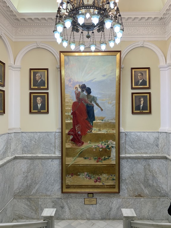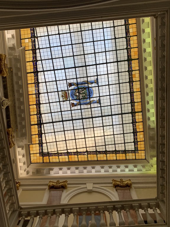 The city is very walkable and we took advantage of wandering through beautiful narrow streets.  First we went to the City Hall and noticed the beautiful building and the interior statues and paintings.  We wondered about security – well it turns out we weren’t supposed to be upstairs and someone came and told us to go out!  I did get some nice pictures though.