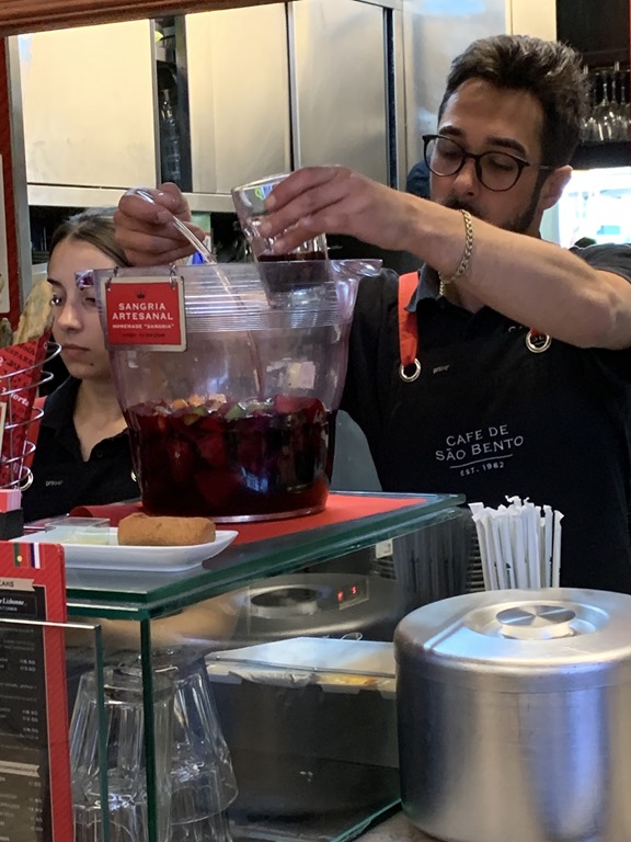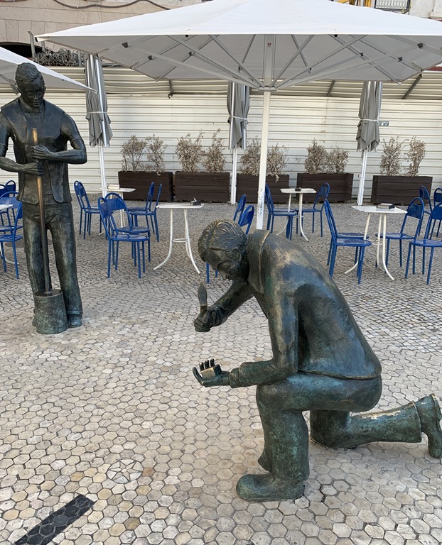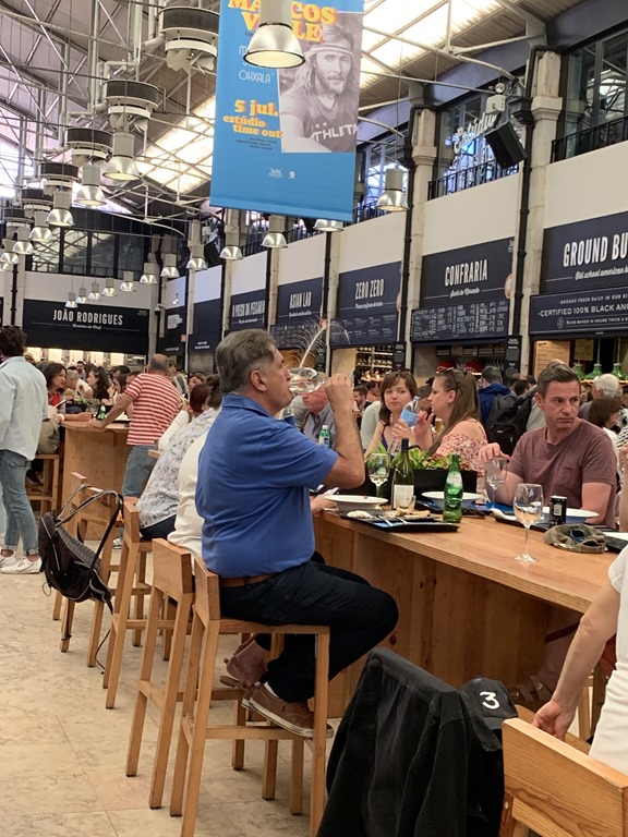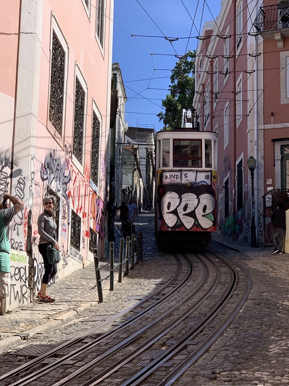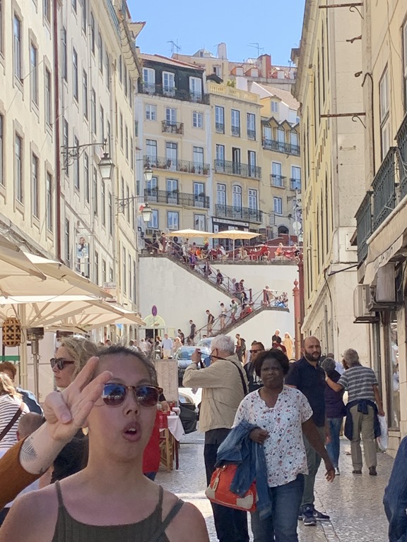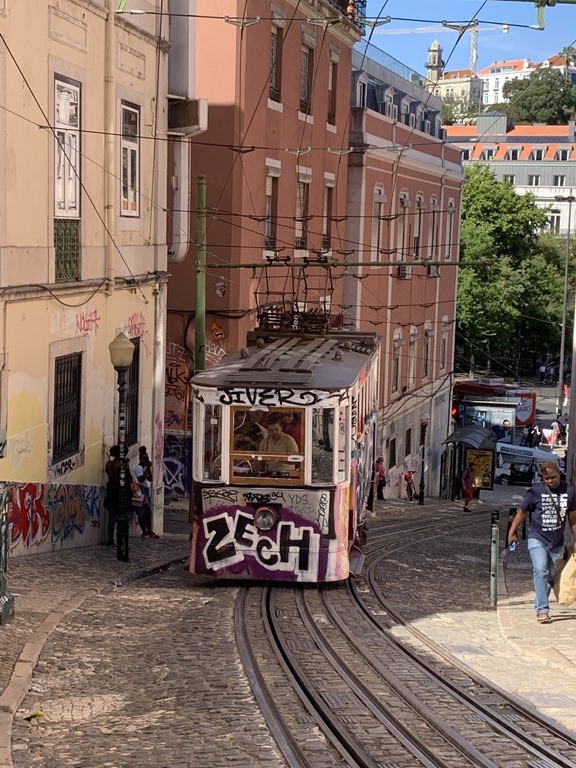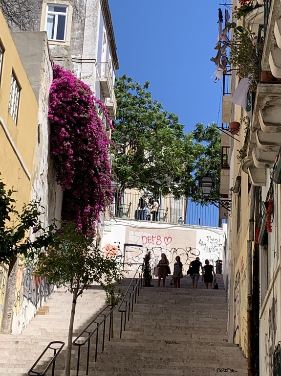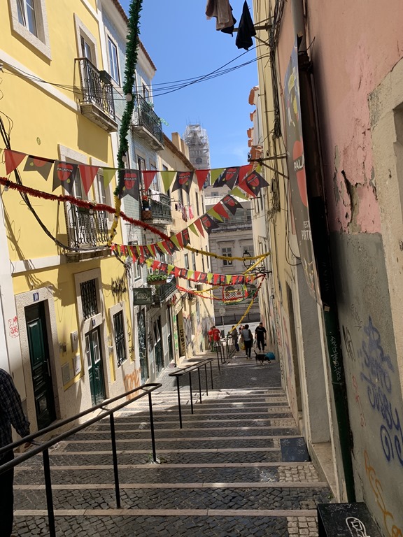 Time Out is in what is called the Baixa (Lower Town) and we decided to head to the Bairro Alto (Upper Town). There is a big elevator which we used last time, but this time we climbed the stairs. By the end of the day our fitness trackers said we had climbed 36 flights!