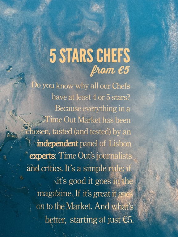 Time Out is a very unique concept and one that is coming to other cities around the world including Boston and New York. High end chefs have booths that have smaller versions of the meals they offer in their restaurants.