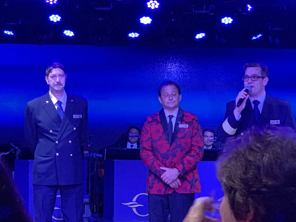Here are a couple of pictures of the new cruise terminal from yesterday in Porto. And last night at the Oceania Club party, our captain, Maroje Brajcic got his 15 year recognition and Ray Carr got his 5 year recognition.