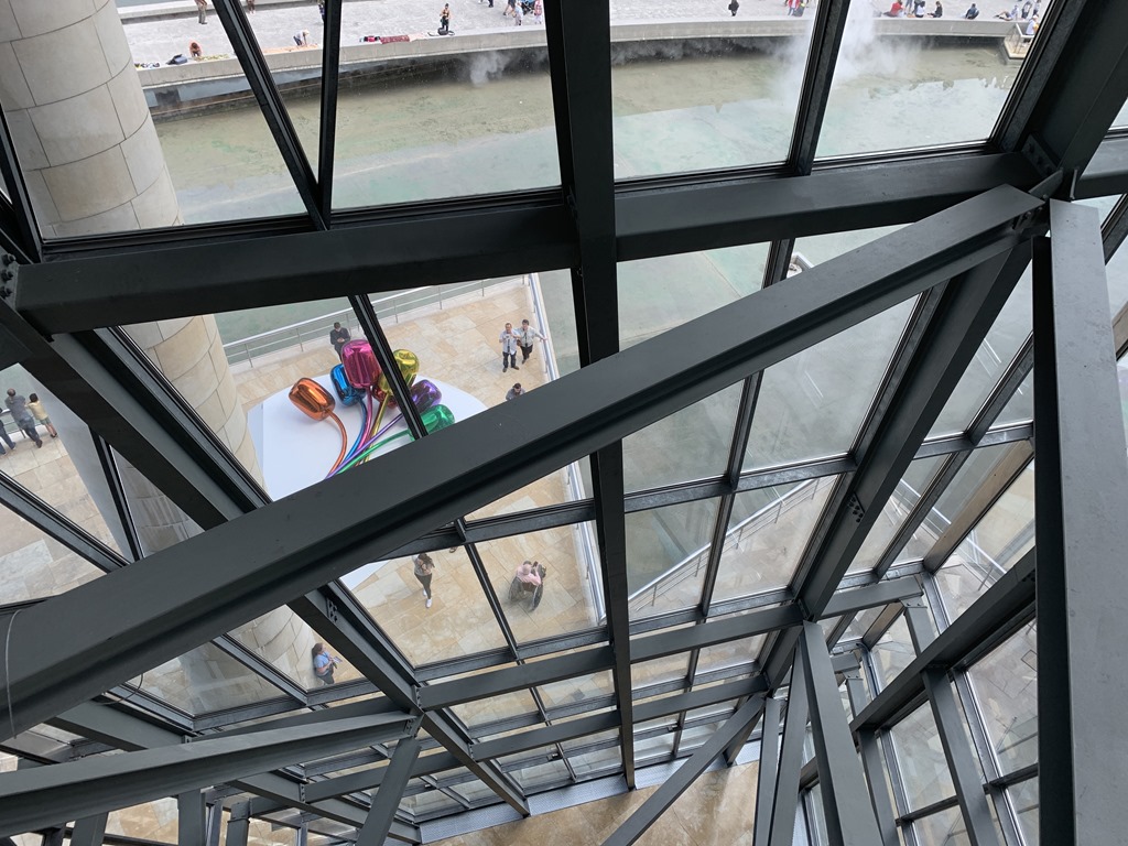 It was a short ride to the museum and Igor told us the history of the area. In August of 1983, Bilbao suffered extreme flooding due to heavy rains. The water rose more than 15 feet and destroyed buildings and bridges in the city. Before this, the city was highly industrialized and many of those industries were devastated. In the 1990’s the city began a transition to a service economy. The Guggenheim Museum was a huge part of this transition. The area used to be lucrative with the shipyards using the iron extracted from the quarries – which was once the city’s main source of income – but were now decrepit. Igor said that it was a highly controversial project at the time, the cost to the city was 84 million Euros. It has turned out to be such a prime tourist attraction that it is the landmark of the city.