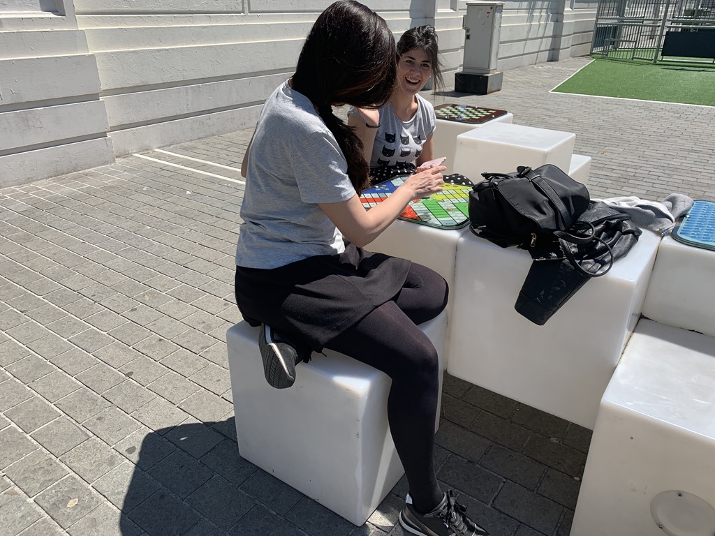 The courtyard area outside of the museum is full of activities. There is a dancing fountain and many activities that delighted kids and adults alike. Bubbles, music and more.