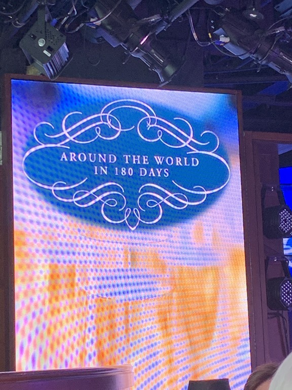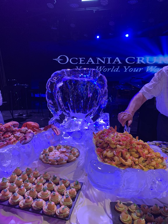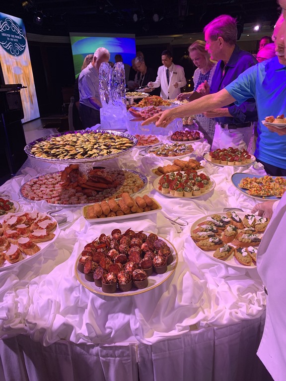 We got back to the ship past the time we were supposed to be on board, but it was an Oceania tour, so they did wait for us. And we had just a short time until the scheduled Around the World event – tapas and magic.