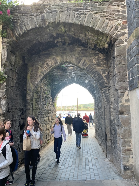 Our main destination was the Conwy Castle. We drove through the beautiful Welsh countryside and noted that there are huge numbers of sheep here. Roberta told us about the drovers who took money from the sale of livestock from place to place. Because it was dangerous to carry money in those days, the drovers were the ones who came up with the banking system so that they could deposit money in one place and withdraw it from another.