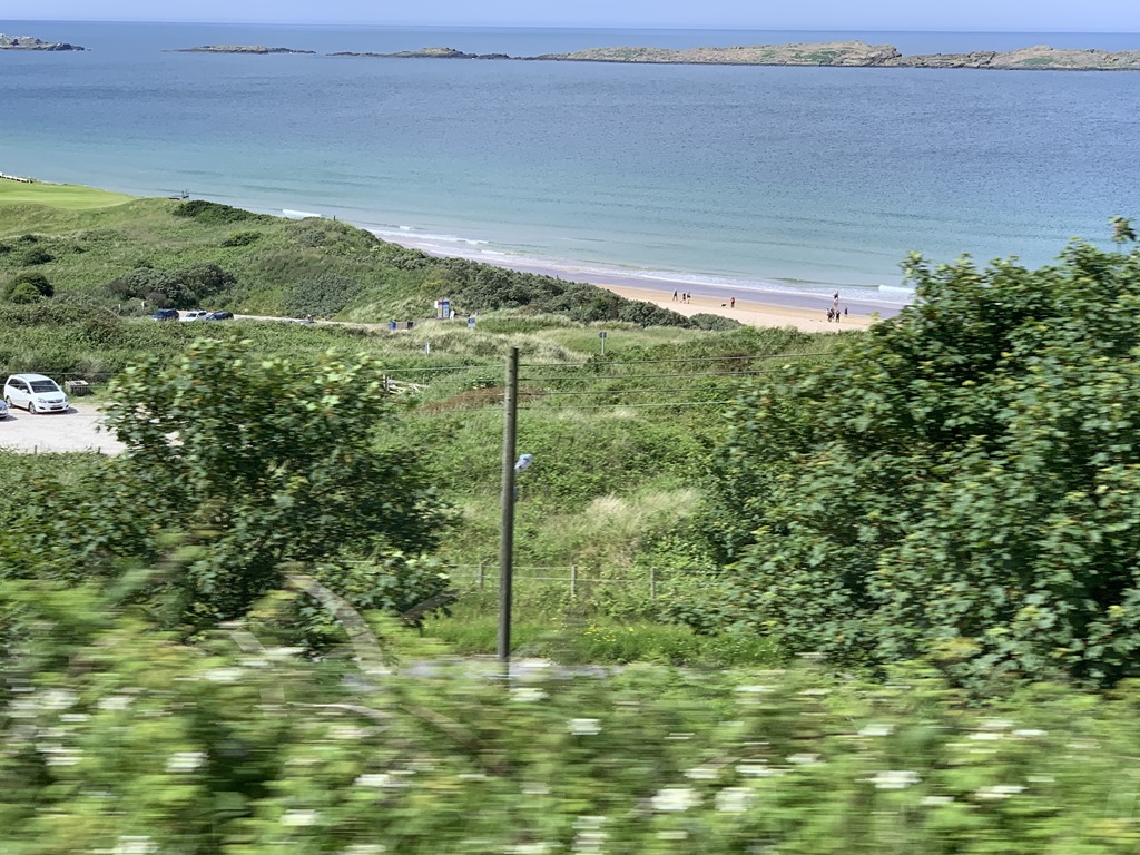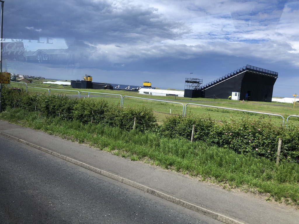 On our way back, we passed the golf course – the Royal Portrush – where the British Open will take place next month. They are very busy putting up stands, etc. Hard to get good pictures. Adrian said that this is the golfer,Graeme Mc Dowell’s home course. The wind off of the Atlantic Ocean makes this quite a challenging course.