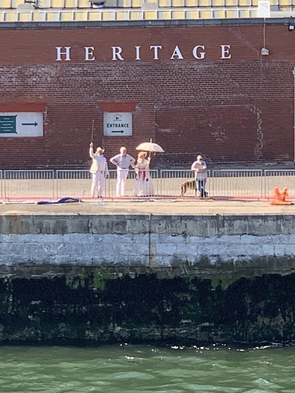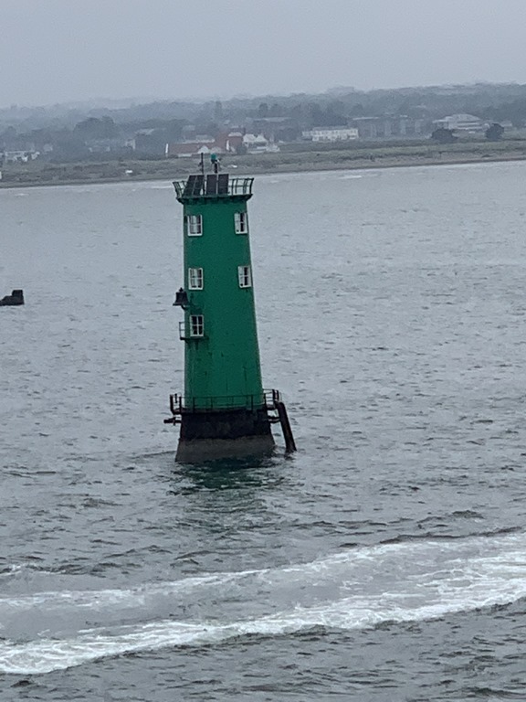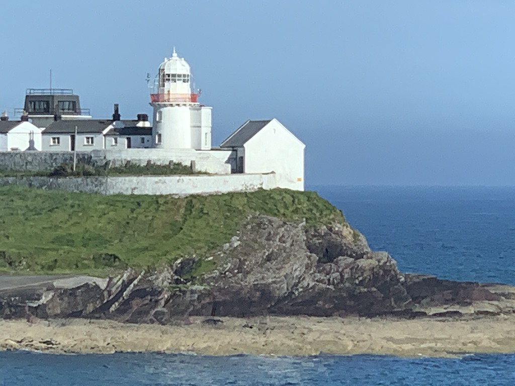 Before we left Cobh, we saw these people in period dress on the pier. We also saw colorful houses, remains of the fort and this lighthouse as we left the harbor and Ireland for our Atlantic crossing.