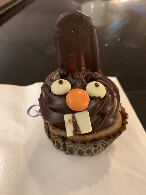 Last night in Horizons, there was a Canada Day party. The entertainment team did songs by Canadian artists and the chefs made these adorable beaver cupcakes and also the traditional beaver tails. You can see that I did a pretty good job on the beaver tail!