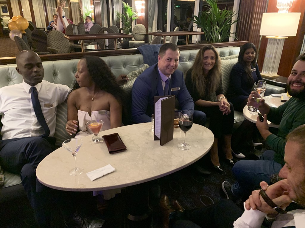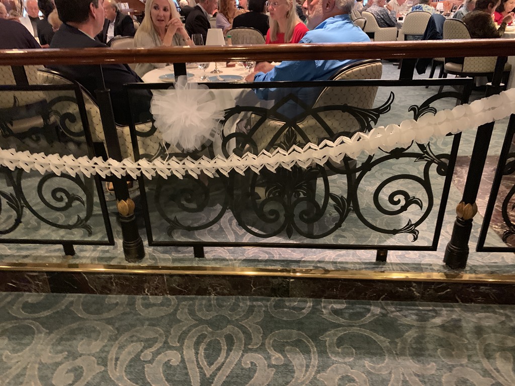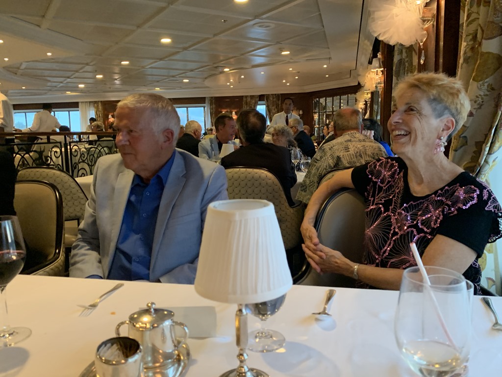 So, last night we had the cocktail party with the officers, the gala dinner and then a party in Horizons with the crew.  Norm didn’t make the late night party – but I had a great time. Everyone danced until late at night