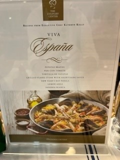 We ended with Sangria Blanca which the chefs made for us to drink as we ate the paella. I had enough of all of the food for Norm to join me at the end of the class to taste each recipe. The paella and the garbanzo dish contained meat, which I don’t eat, but I was able to taste just the rice in the paella and just the spinach and garbanzos in the last dish. I would make them all at home and could make substitutions in each.