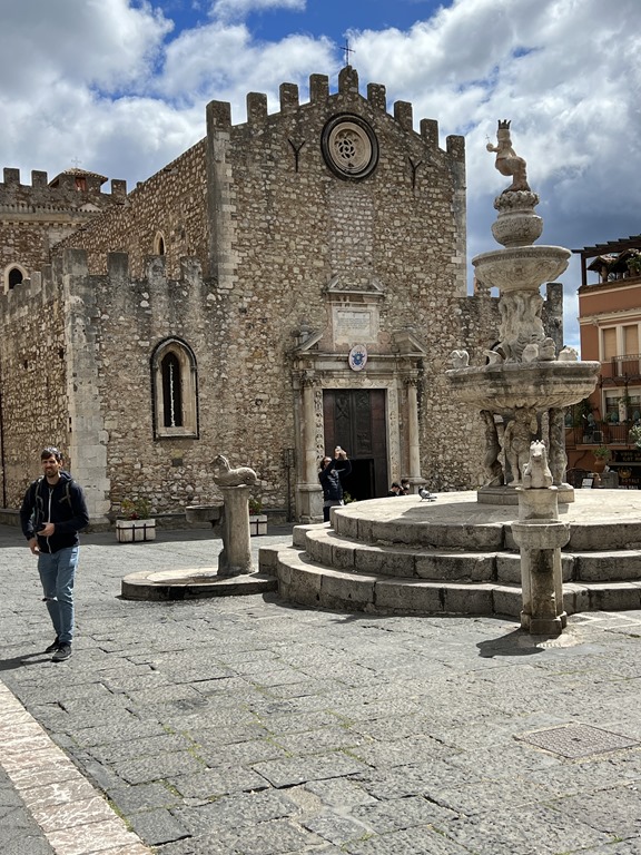 Taormina is a really charming town, 12,000 population, with many winding streets, several squares usually build around the churches, and one of the main attractions, the Greek and Roman Theater. Here are some of the sights we saw on our walk to the theater.