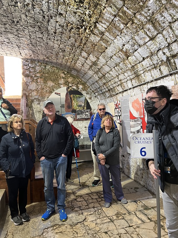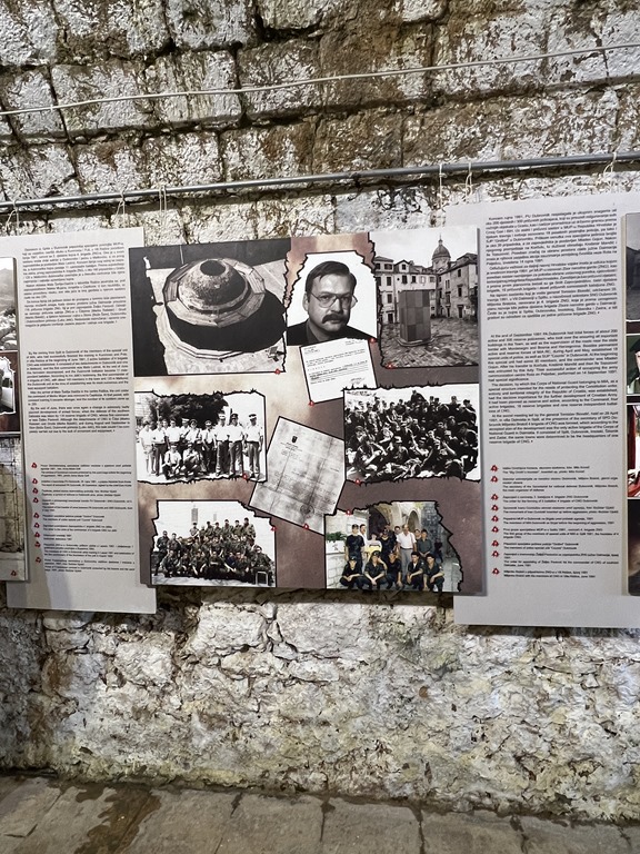 We went by cable car to the top of a mountain where the War Museum is located. It is in the old fortress and is lined with pictures and narrative of the war with Serbia and Montenegro. There is also a short movie about that war and the extreme damage it did. They have meticulously reconstructed the city after both the earthquake and the war. The images of the current war in Ukraine came to our minds. What a tragedy.