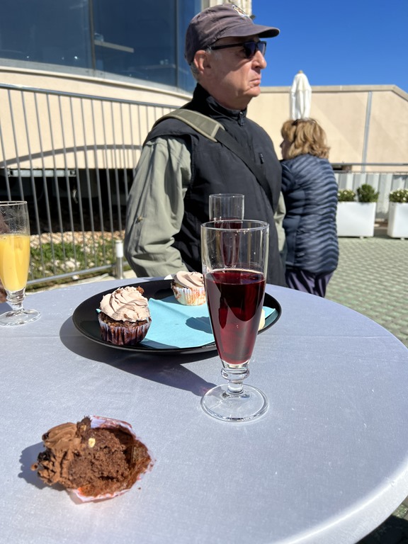 Then we were invited to a café overlooking the city for a refreshment. The servers were so friendly and we were served either blueberry juice or orange juice and what they called a muffin. They were more like cupcakes with icing and were delicious.