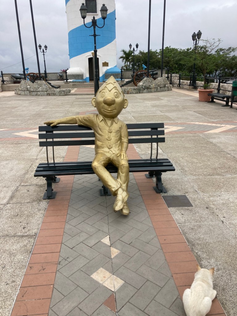 This statue is a sculpture of Juan Pueblo who is a popular character here in Guayaquil. His image dates back to 1918 when he first appeared in the newspaper. He represents Guayaquil’s common man, humble and hard working, trying to find a way to get ahead.