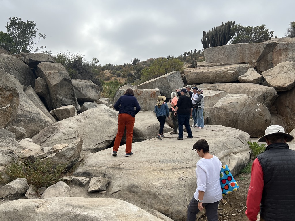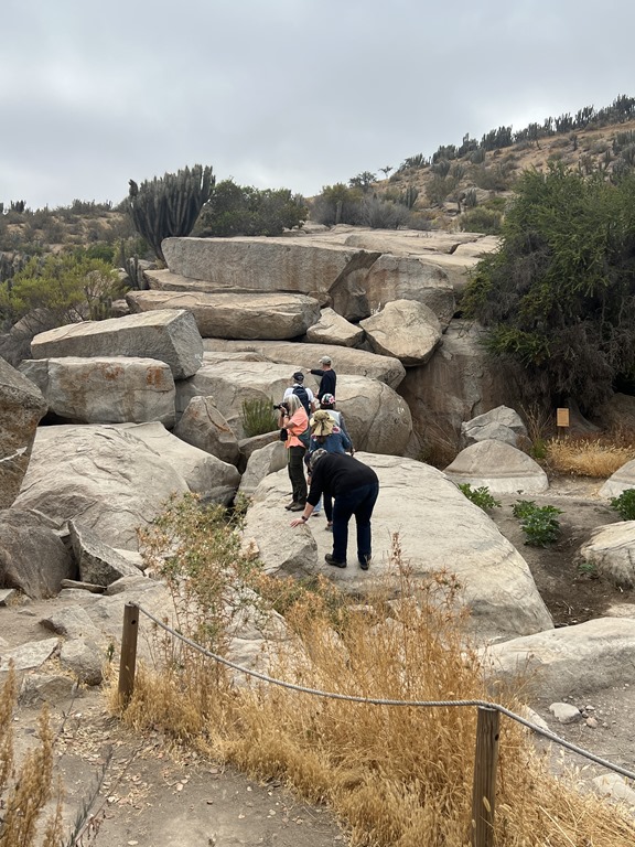 Our tour guide was Jorge. We traveled through the city and south on the Pan-American highway, at first along the coast and then through more of the desert but then into the valley. The highway is the longest in the world, it goes from Alaska to the bottom of South America. Jorge, of course, gave us lots of information about the area. On the map, Easter Island is just west of Coquimbo and we are nearing the center of the long country of Chile. In the desert, they boast of the clearest sky in the world and there are massive telescopes in northern Chile. Mining is a main industry, mostly for copper and iron.