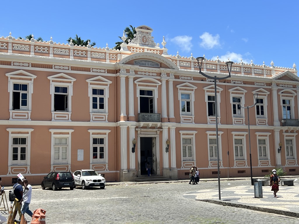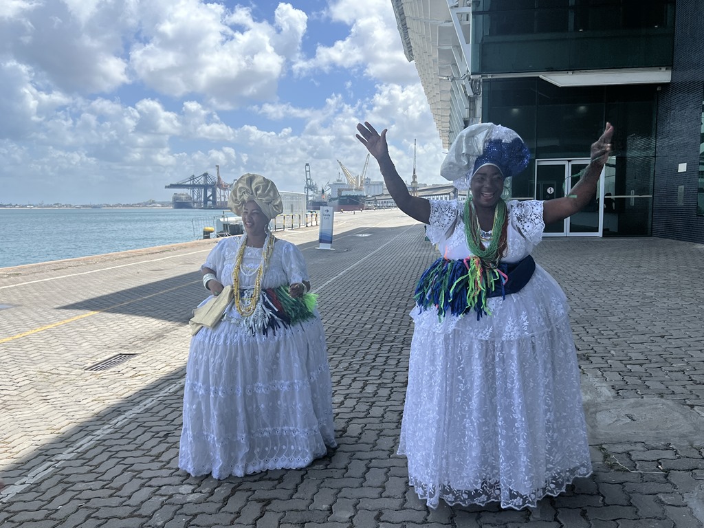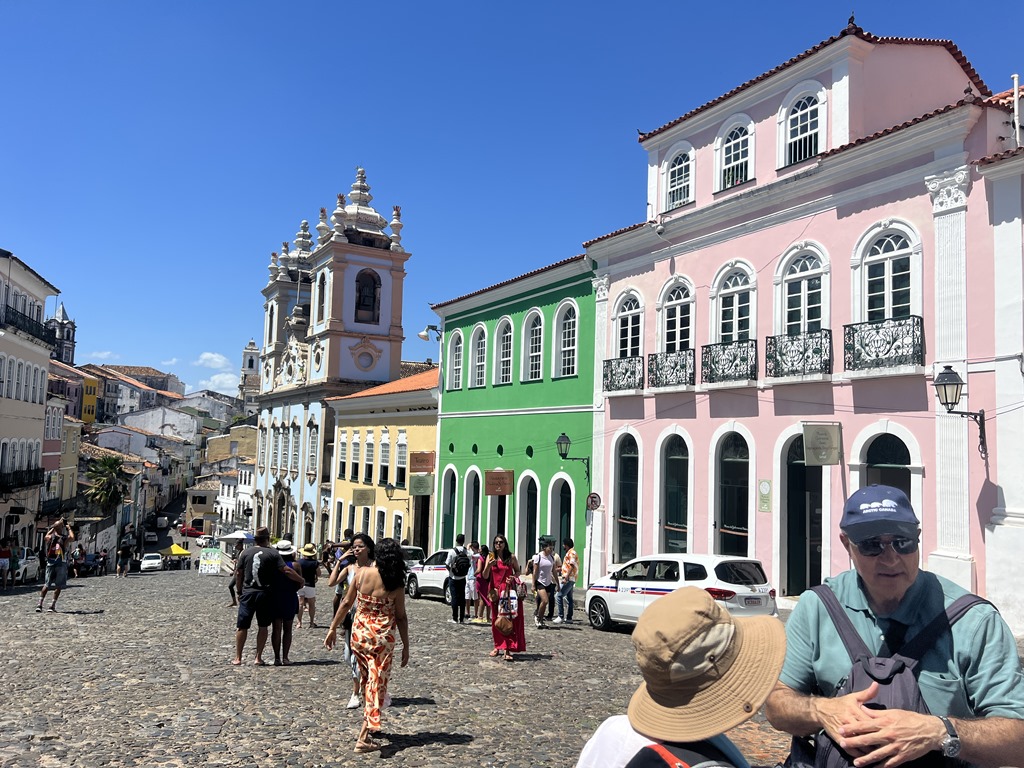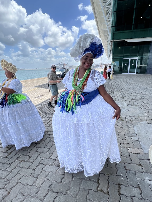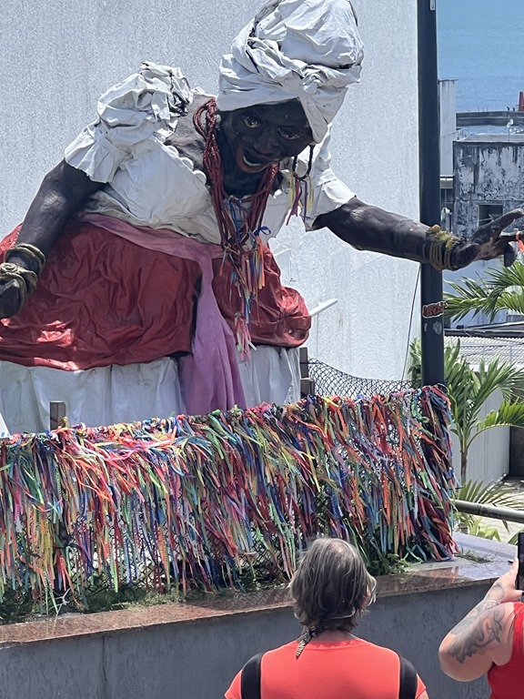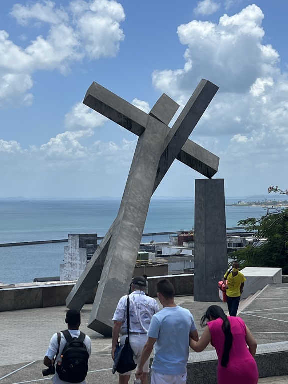 On Tuesday, we had booked a tour with Sonia, Boris, Mui and Erin, and Karen and Bruce joined us too. Our guide was Vagner. It was very hot here, and he said it is one of the hottest cities in Brazil. The first thing we found out is that the van’s air conditioning wasn’t working properly. He said that when we got to a walking portion of the tour, he would get a different van. In the meantime, he gave us some information about this city. We drove along All Saint’s Bay which is the second biggest bay in Brazil. The population of the city is million and 85% of the population is Black. This was, in fact, the first slave harbor with people coming by ship from Africa. Slaves came here from 1551-1888 and Brazil was the last country to abolish slavery. Nevertheless, illegal slave trade persisted until 1903.
