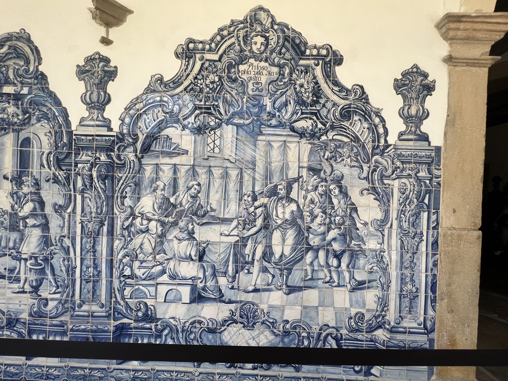 This church has the outdoor courtyard and all the way around are these Portuguese tiles that all represent something different. Beautiful!