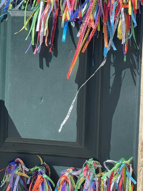 We were greeted by women in African Costumes who tied colorful strings on our wrists. It is said that when they fall off your wishes will be answered. Mine didn’t last the day! You also find many tied onto bridges and in the churches.