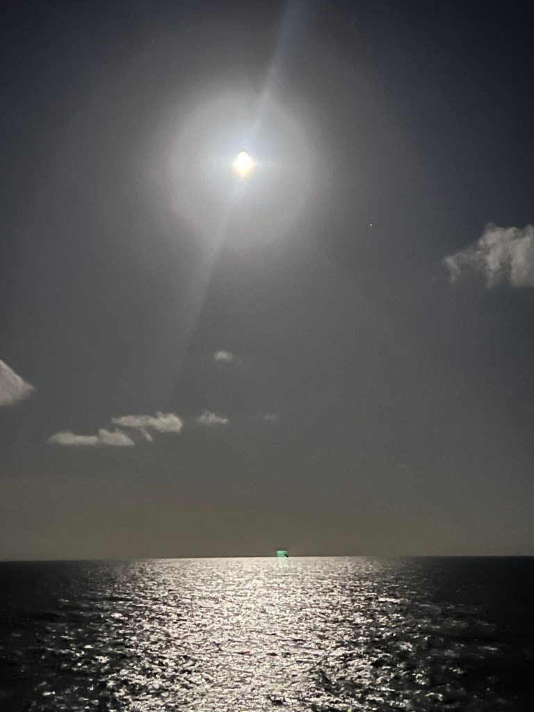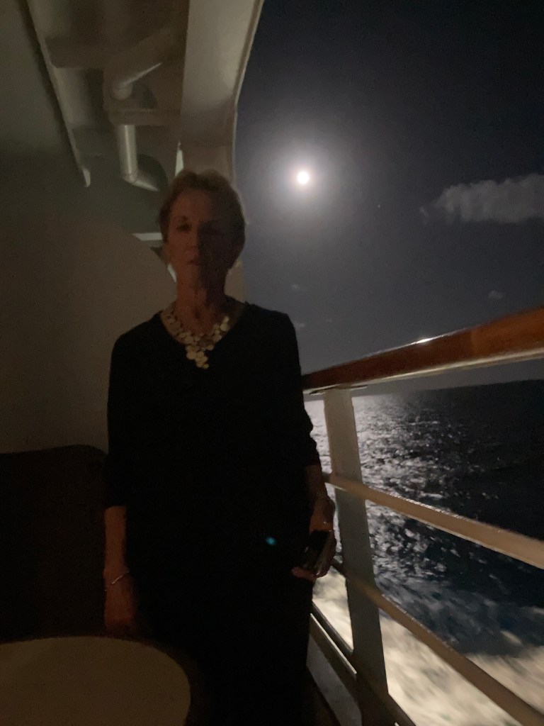 Nice picture of the full moon and one Norm took of me on the balcony!
