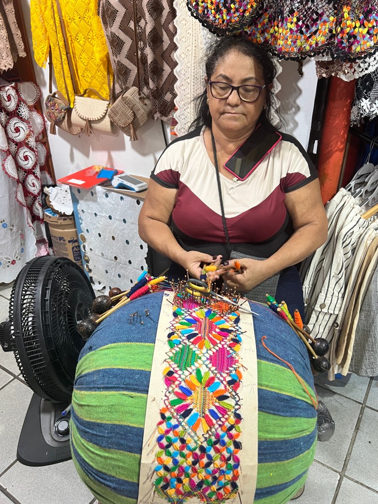 Our last stop was a handicraft market which had all touristy products, and nothing we wanted to buy. We did see a woman doing the weaving of the garments that are sold here.