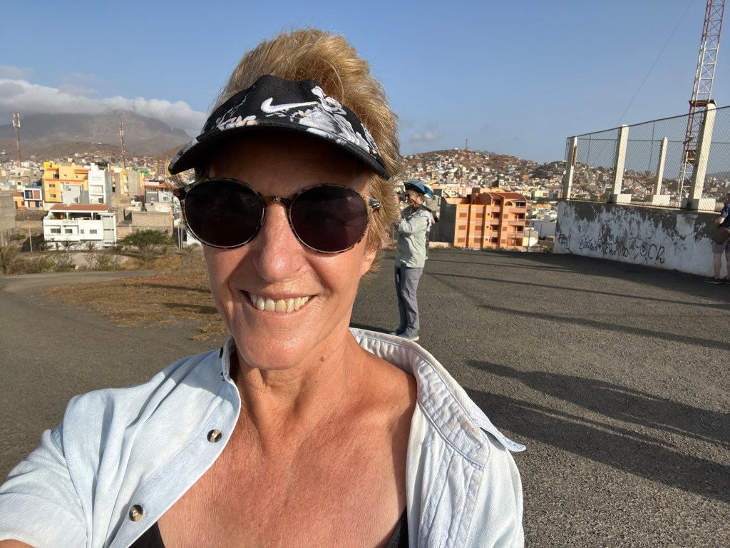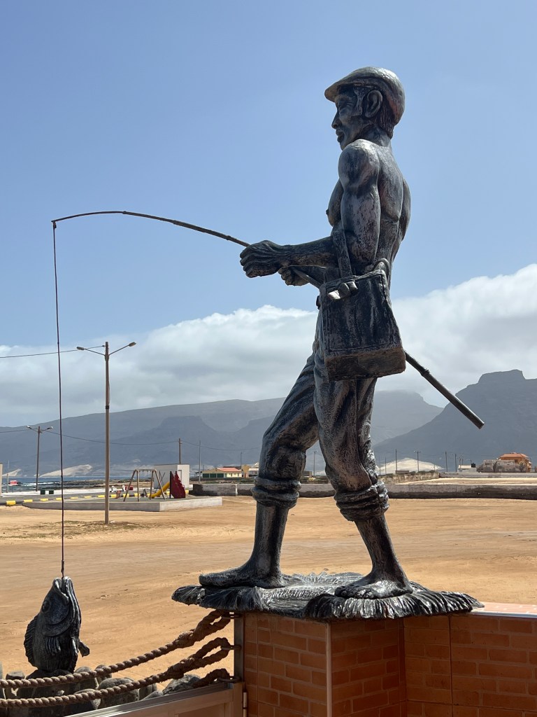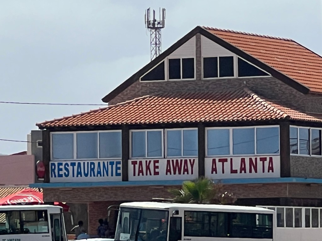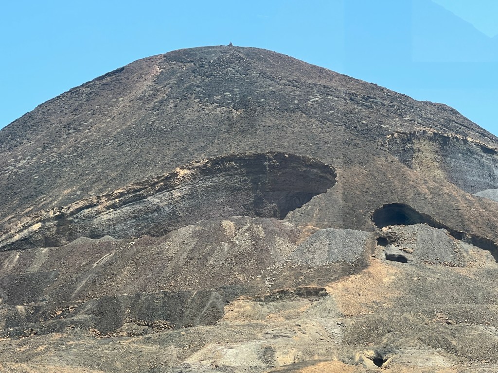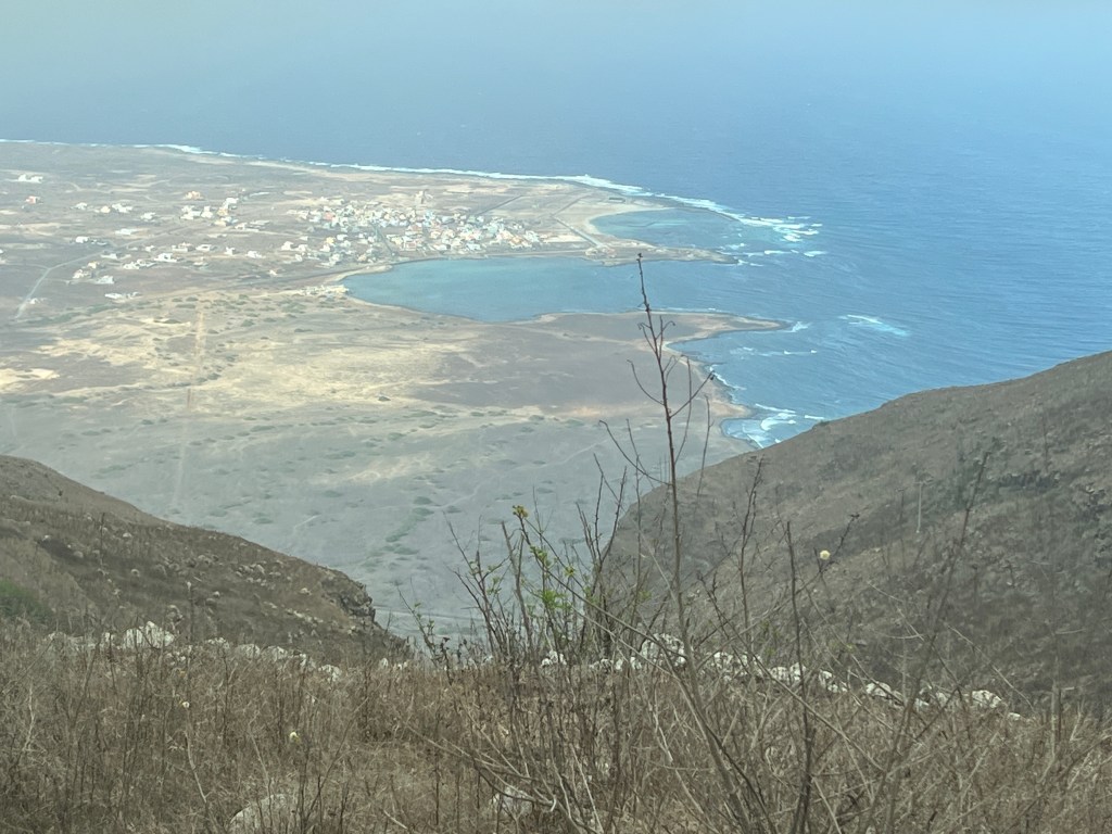 The beach was pretty far below our stop and it was a short stop, so no one walked down. We could see the stark contrast between the beautiful blue sea, the volcanic rock and the white sand beaches. Many of the beaches are grainy and gray but not this one. The white sand was blown here from the Sahara desert, it is not natural to Cape Verde!