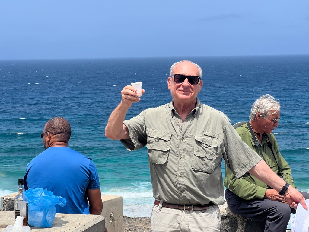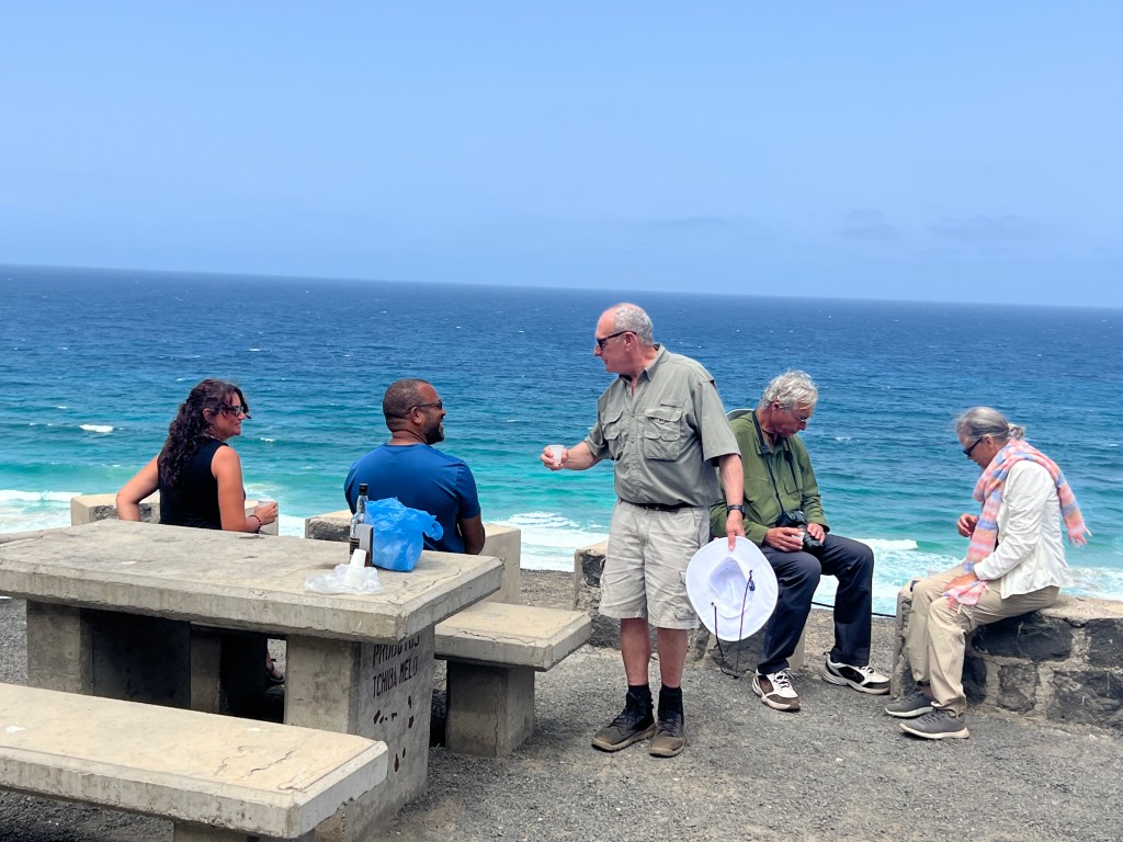 After the hike, we drove to the first beach we would visit, Praia Grande. We tasted the local liquor, Alcane Grogue, which is made from sugar cane and has an alcohol percentage of 43%! It was too strong for me, but Norm enjoyed it so much he even gave some to these people who were not part of our tour.