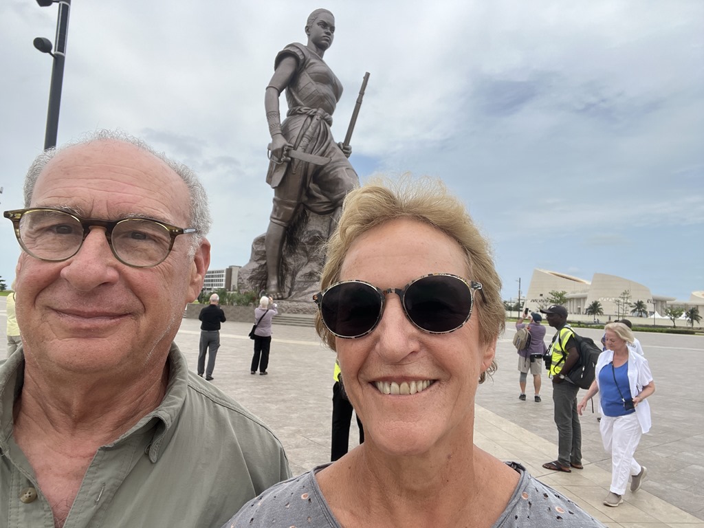 We stopped at the Bella Naija statue, a 30m tall statue honoring the women warriors of Dahomey. It is also called the Benin Amazone. Benin was once the center of a powerful regional kingdom called the Kingdom of Dahomey.  There was a powerful women’s corp which grew to about 6000 women and was known to be fierce and cruel.