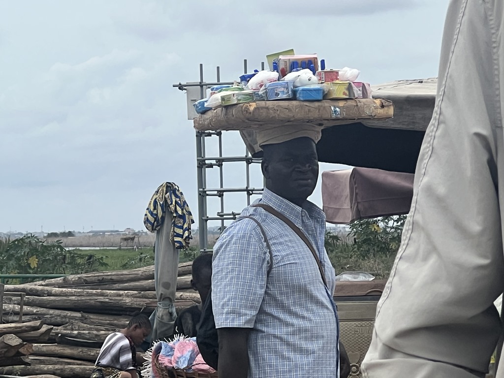 We passed by markets and noted these men selling cosmetics from the pallets on their heads.