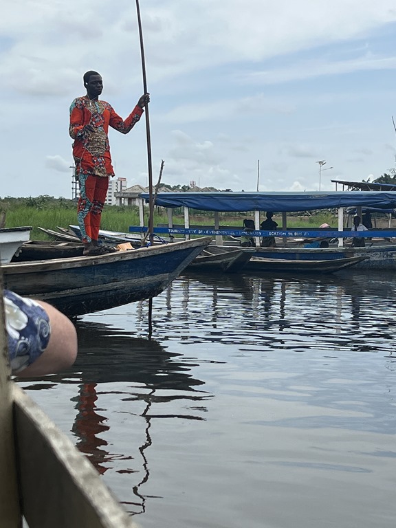 Benin is a new country for us. Cotonou is on the coastal strip between Lake Nokoue and the Atlantic Ocean. The city is cut in two by a canal, the lagoon of Cotonou, dug by the French in 1855.  The Oueme River flows into the Atlantic Ocean at Cotonou.  The population is about 700,000.