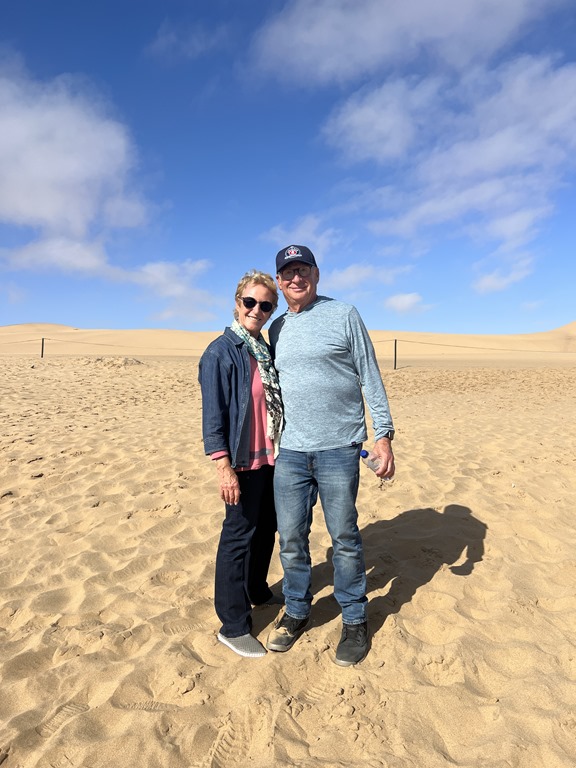Our last stop was Dune 7, part of the Namibian desert. It is named because it looks like a 7 from the air. Last time we were here we climbed the dune. This time we only walked a short distance but watched others climb to the top. We can see the large sand dunes from where our ship is anchored.