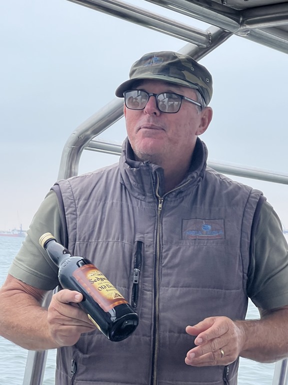 Our guides were terrific. The best thing was how they got so excited to show us everything. Of course, the boat captain and was very knowledgeable and got so excited to show and tell us everything. Here he is showing us the Sedgwick’s Old Brown Sherry, which, of course, we all got to drink.
