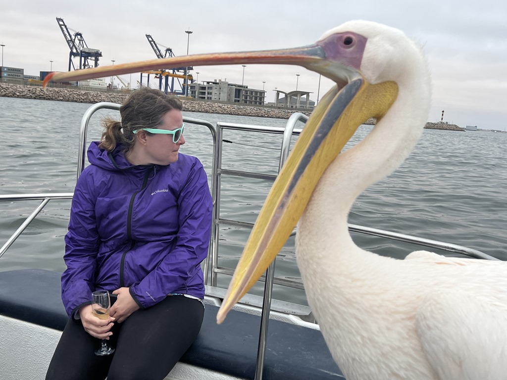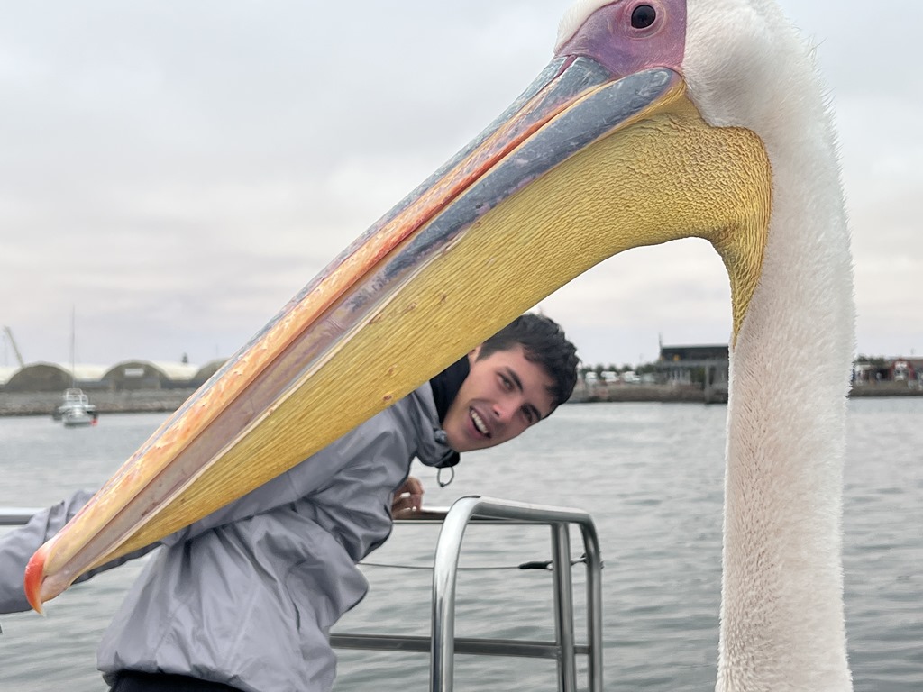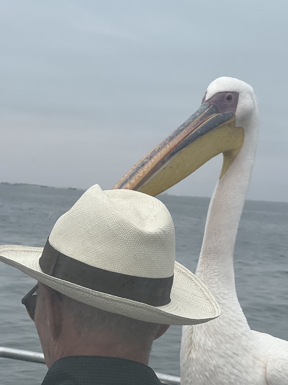 When we were here and Namibia, in that same day, a pelican stepped on my mother’s head. It was the funniest thing.