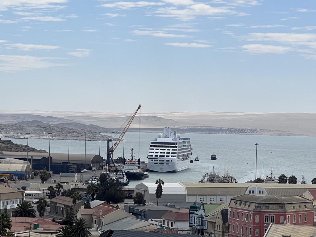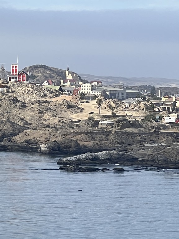 This is our last port in Namibia and our second time here.  The coastline here is very rocky and there isn’t a huge harbor.  Here are some pictures from our sail in.  We arrived at 10 AM, so I took these while on my deck walk.