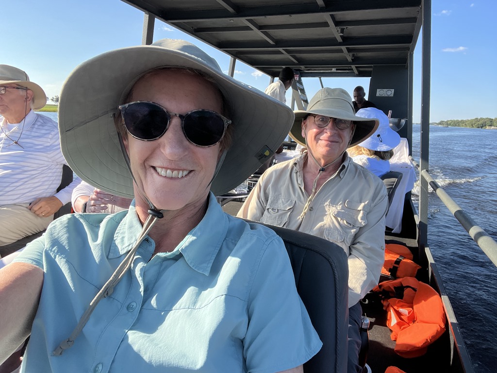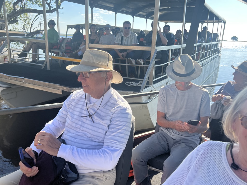 We got back to the lodge and had cocktails and dinner. After dinner, we got some confusing messages from the camp manager – we were told that our planned 11:50 departure to get to Kasane airport (which is only a 10 minute drive away) was changed to 9:30 and would be instead be picked up and taken to Livingston airport which is in Zambia. Then she said it was in Zimbabwe (it is in Zambia) – so some people were getting pretty concerned about the change which would include buying a Zimbabwe visa at the border, how long it would take, etc. To me, it didn’t make much sense since there were other groups of Oceania passengers on overland trips, some to Victoria Falls which is right near that airport while Kasane is so close. Maybe they got us confused with another group? And no one could get on the wifi to find out anything about the airport, etc. Later we got the word that we were indeed leaving from Kasane at 11:50 AM so we would have time for a morning game drive and an early lunch before leaving for the airport.